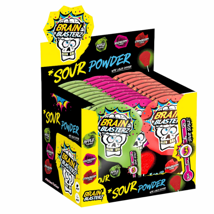Brain Blasterz Sour Powder Lolly 30 x 10 g – Syrligt doppgodis i explosiva fruktsmaker