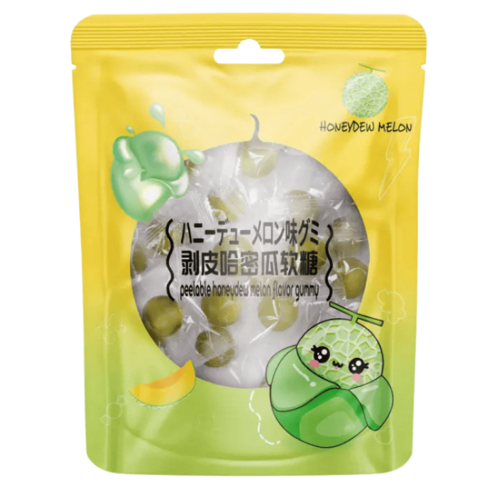 Smaken är mild, söt och fruktig med tydliga toner av honungsmelon. Godisbitarna har en mjuk konsistens men är fasta nog för att du ska kunna skala bort det yttre lagret innan du äter dem. Det skapar en interaktiv upplevelse som gör varje tugga mer spännande och lekfull.